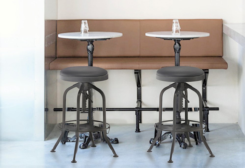 China furniture manufacturer offer industrial swivel bar stool with upholstered seat. It is a vintage style bar stools which bring an edgy yet sophisticated atmosphere to your kitchen or bar space with the perfect seating addition. Our barstool offers an exceptional industrial modern appeal for any space with its wrought-iron frame and upholstered seating. Ideal for those who have a variety of guests, this seat offers adjustable and swivel functions for easy maneuverability and personalization, making this a perfect fit for all. With its refined design and flawless capabilities, this impressive barstool allows you to create an atmosphere of raw charm.